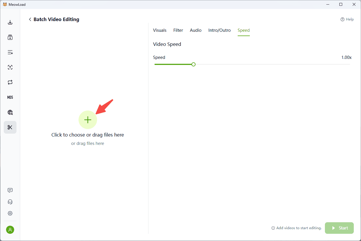 Iniciar para aplicar los cambios de velocidad a todos los archivos subidos simultáneamente.