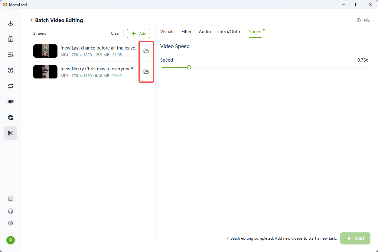 En la edición de video, la velocidad es fundamental para la narrativa y el ritmo. Sin embargo, al trabajar con grandes volúmenes de material —como timelapses o grabaciones multicámara— ajustar cada clip individualmente puede ser agotador. ¿Realmente quiere repetir el mismo proceso manualmente para 50 o 100 clips?. La función "Ajuste de velocidad por lotes" de MeowLoad soluciona este problema. Desde una interfaz única, podrá configurar ajustes precisos para todos sus archivos, ya sea para lograr una cámara lenta dramática o una aceleración uniforme. Aprenda con este tutorial a controlar el tiempo de forma eficiente y logre efectos creativos en serie, para que pueda dedicar toda su energía a perfeccionar su contenido.